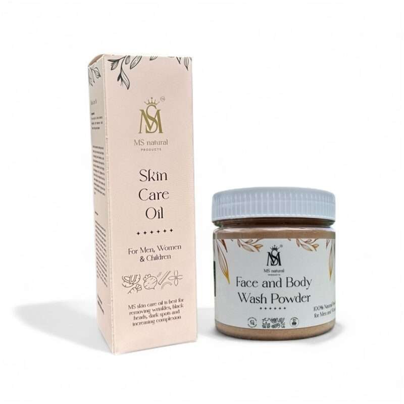 Skin Care Oil 200 ml+ Face Body Wash Powder Combo